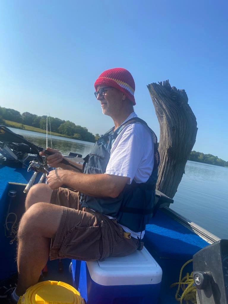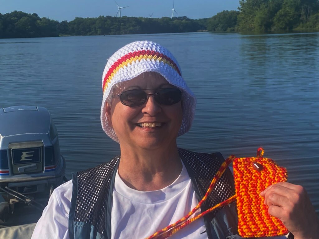 Wayne and I went to Pony Express Lake for a couple of hours over the weekend. It was really relaxing to be on the water on such a beautiful day! We both wore one of my KC Chiefs-inspired bucket hats and I used my Chiefs-inspired crossbody bag to hold my phone and ID. Both items can be found in my online store (shop.bellescrafting.com).